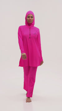 نقدم لك البوركيني الوردي القوي، وهو مزيج رائع من التواضع والأناقة. صُمم هذا البوركيني للنساء اللاتي يقدرن الأسلوب النابض بالحياة مع الحفاظ على التواضع، ويضيف لمسة من اللون والأناقة إلى مجموعة ملابس السباحة الخاصة بك، وهو مثالي للشاطئ أو حمام السباحة.